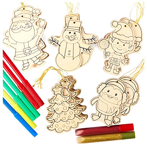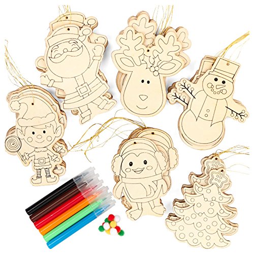 Package of 30 Ready-to-Decorate Wood Christmas ornaments. Perfect for Kids Crafting, Group Projects and DesigningFeature