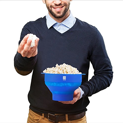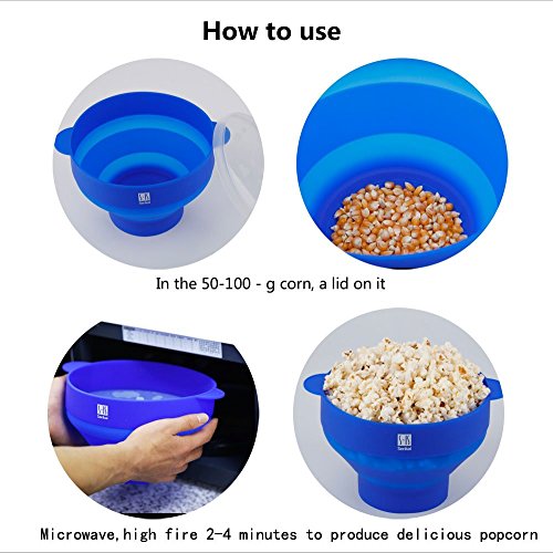 Premium Silicone Microwave Popcorn Popper,Foldable Healthy Hot air Popcorn Maker Free of PVC & BPA Easy to Use - Healthy Choice - 100% Platinum Silicone (Blue)