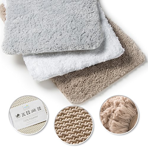 LUXURIOUS MICROFIBER Bath Mat – thick shag pile – over 1.25 inches thick – is fluffy, ultra soft bath rug is practical and plush. Your feet will say thank you when stepping out of the shower or bathtub on the Luxe microfiber bath rug.