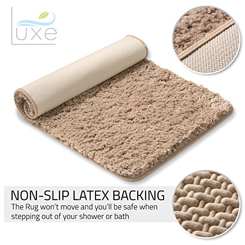 NON SLIP Bath Mat – with a durable, latex backing, the Luxe non-slip bath mat will stay in place. Non skid backing ensures the rug won’t move and you’ll be safe when stepping out of your shower.