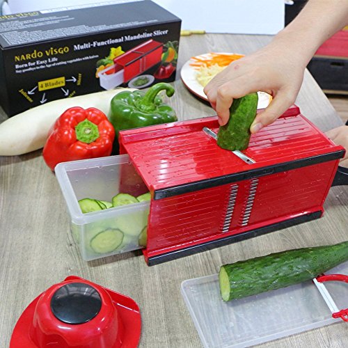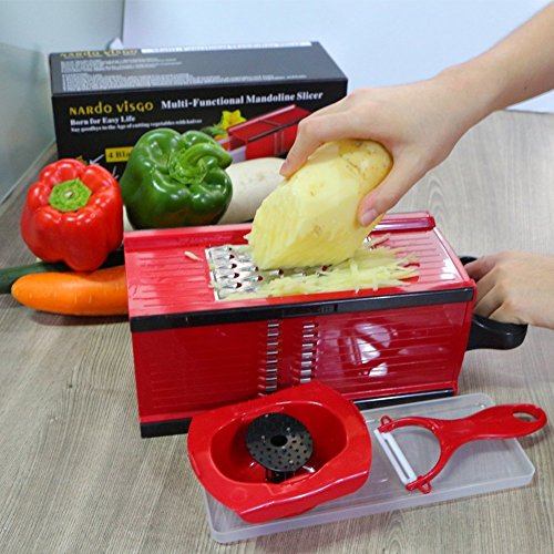 Nardo Visgo® Mandoline Slicer with 4 Stainless Steel Blades - Multi-functional Vegetable Peeler Slicer Grater & Julienne Slicer, Time Saving Fun Creating Kitchen Gadget for Home & Commercial Cooking