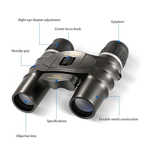 포터블 쌍안경은 10배 강력한 배율과 25mm대물 렌즈 직경을 들고 있습니다.