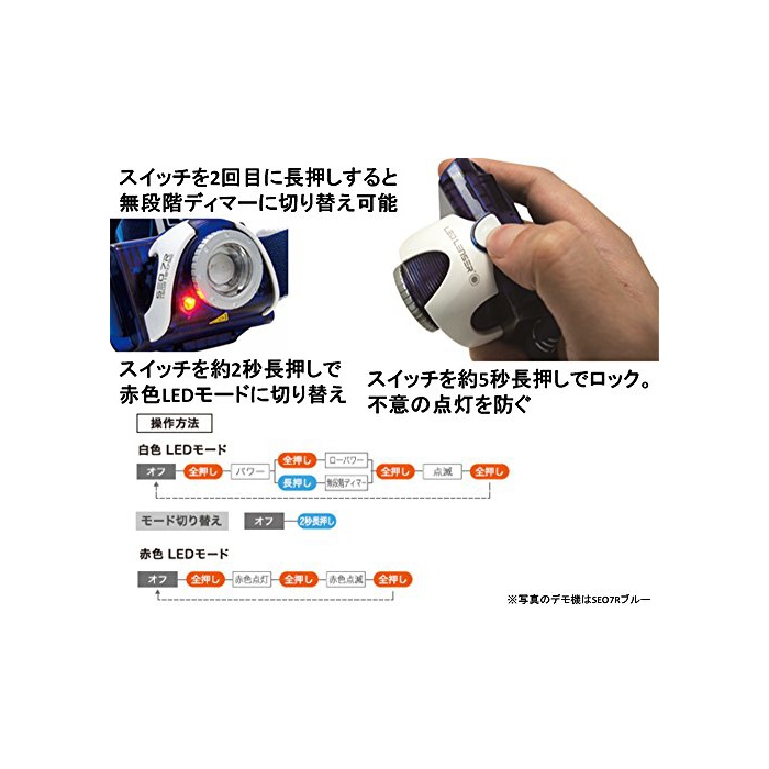 원본상품명: LEDLENSER(レッドレンザ?) LEDヘッドライト SEO7R 釣り/登山/トレラン用 【明るさ約220ル?メン】 【最長7年保?】 充電式/?4乾電池(AAA)x3本/防水等級:IPX6 [日