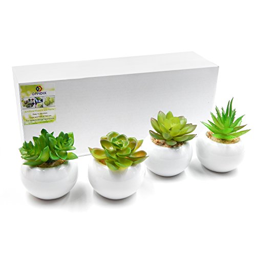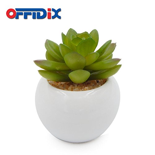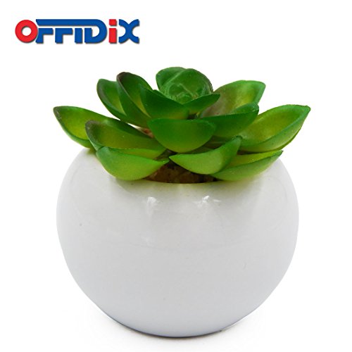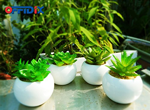 OFFIDIX Artificial Succulent Plants for Home & Office Decoration with Ceramic Pot 4pcs/Set Indoor Christmas Gift Fake Green potted plant (Round)