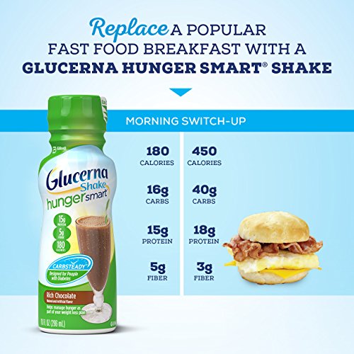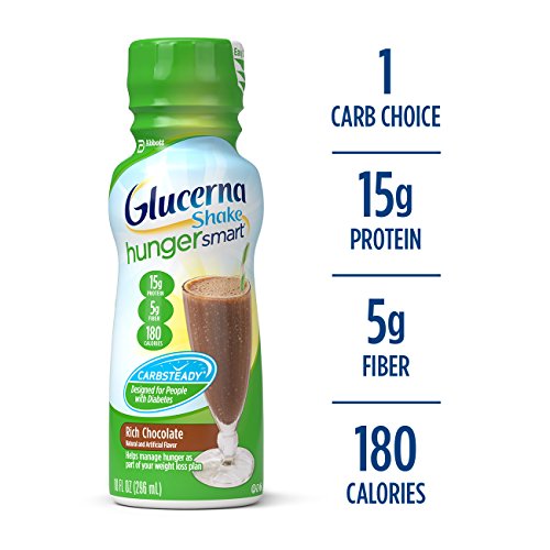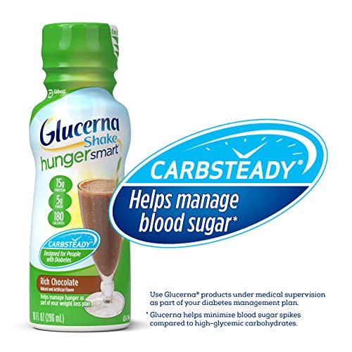 Glucerna Hunger Smart Shakes are meal or snack replacements to help manage blood sugar AND hunger. Specifically designed for people with diabetes, each shake has 15 grams of protein to help manage hunger and CARBSTEADY, a unique blend of slow-release carbohydrates, to help manage blood sugar*. The shakes also have an excellent source of 25 essential vitamins and mineral. *Helps minimize blood sugar spikes compared to high glycemic carbohydrates.Feature