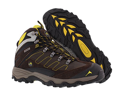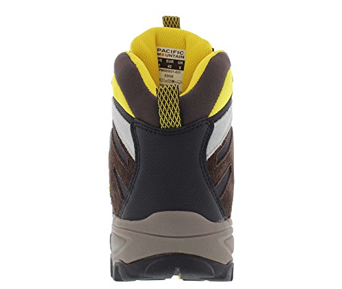 Studio : Pacific Mountain Publisher : Pacific Mountain Binding : Apparel Product Description Edge Mid boot in chocolate, yellow and black has a solid construction boot, a waterproof membrane to make sure your feet stay dry and rust resistant ornaments that make them durable. The EVA midsole along with the memory foam footbed will provide all the comfort you need for your next adventure. 0