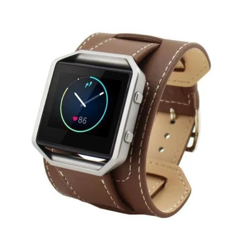 [해외]가죽 더블 투어 커프 시계 밴드 스트랩 핏 비트 블레이즈 LED 시계 추적기, 팔찌 형 브라운
