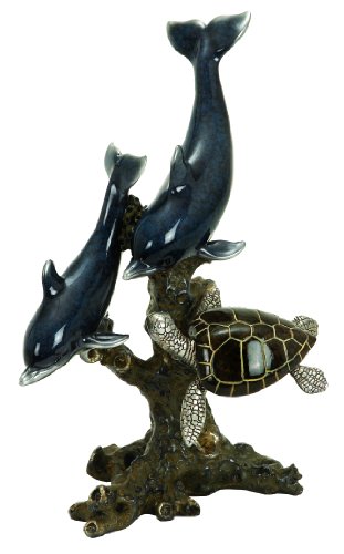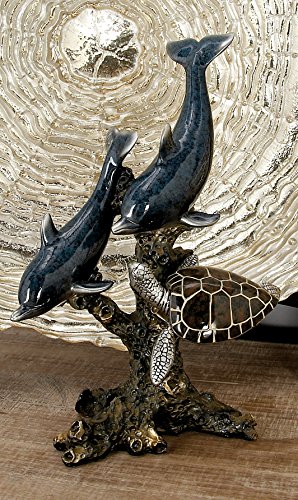 Deco 79 98396 Polystone Dophin/Seaturtle Cold Cast Statue Sculpture