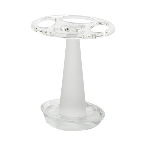 - Four openings hold brushes upright for sanitary drying and storage; lipped base catches drips