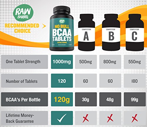 -. Binding : Health and Beauty -. Brand : Raw Barrel -. Color : Black -. EAN : 0784672825719 -. Feature : EXTRA STRONG 1000mg TABLETS - each pill has at least twice as many amino's as the other leading brands. This means you take half the tablets for the same dose - and get twice the value. / BUILD MUSCLE, burn fat and support muscle recovery. Our BCAA's have been shown to help increase lean muscle mass by increasing your protein synthesis. In fact you will notice a difference in lean muscle development within only the first week. / PURE, clean, quality, pharmaceutical grade and laboratory tested branched chain amino acids - don't clog up your body with any fake fillers. No added bull, just the good stuff. / FREE DIGITAL GUIDE with every purchase, The No Bull Guide to Fitness - Learn what the fitness industry doesn't want you to know! And discover the The Proven 7 Step Blueprint To Your Perfect Body... / LIFETIME SATISFACTION GUARANTEED - We like to go the extra mile, which is why that if you don't see RESULTS or are not happy for ANY reason, you can contact us for a FULL REFUND, no questions asked. Making your purchase COMPLETELY RISK FREE. At Raw Barrel we believe customer service is just as important and the purest creatine. -. IsAdultProduct : 0 -. Label : Raw Barrel -. Manufacturer : Raw Barrel -. PackageQuantity : 1 -. ProductGroup : Health and Beauty -. ProductTypeName : HEALTH_PERSONAL_CARE -. Publisher : Raw Barrel -. Studio : Raw Barrel -. Title : Raw Barrel's - Pure BCAA Tablets - EXTRA STRONG 1000mg Per Tablet - SEE RESULTS OR YOUR MONEY BACK - 120 Pills, 2:1:1 Branched Chain Amino Acid Ratio - *FREE* digital guide -. UPC : 784672825719