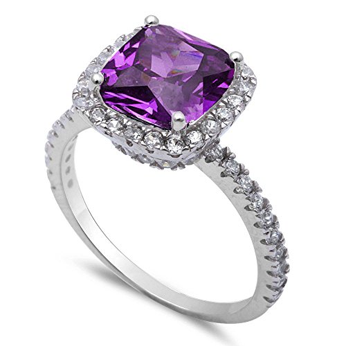 -. Title : 9.50ct Cushion Cut Simulated Amethyst CZ .925 Sterling Silver Ring Sizes 5-11