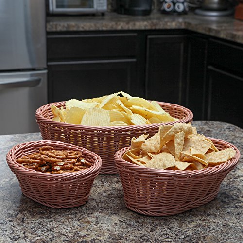 VERSATILE - Use these baskets to hold fruits and vegetables, or heat and serve rolls, muffins or pastries. Perfect to store cosmetics, sewing needs, or any odds and ends.