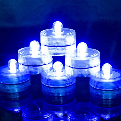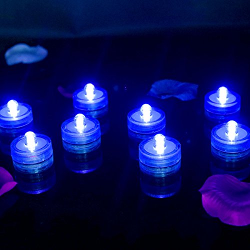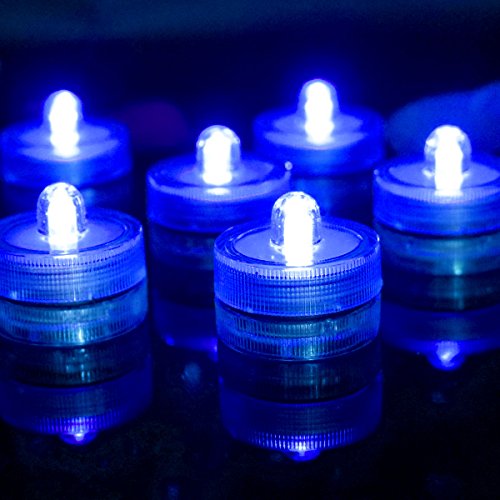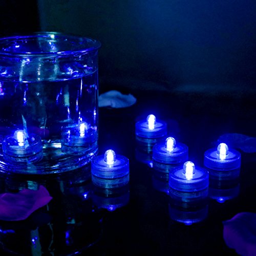 Youngerbaby 24 Pcs Blue Submersible LED Light, Safety Battery Operated Waterproof Tea Lights, Romantic Underwater Lights for Wedding Reception, Bathtub, Vase(Safety with Children and Pets)