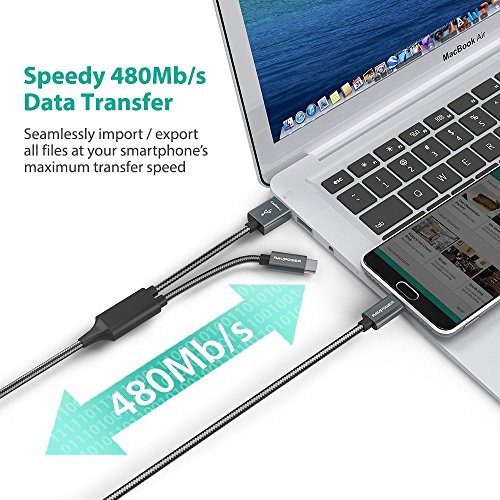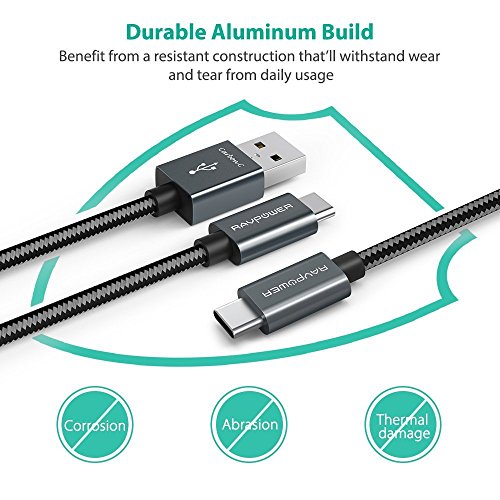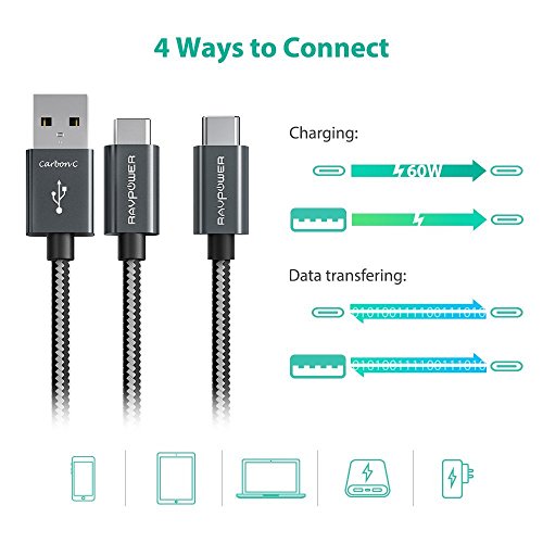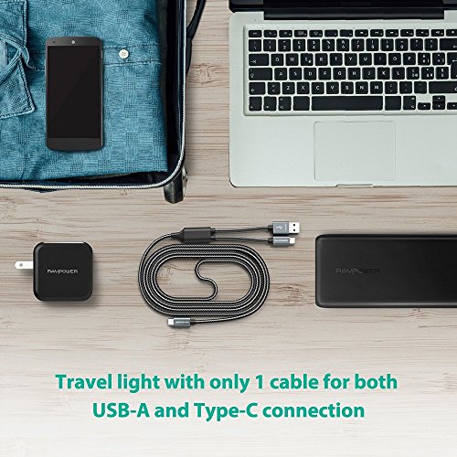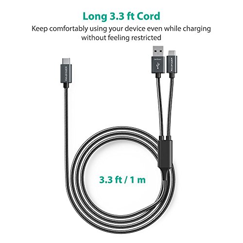 RAVPower Fast Charging 2-in-1 USB Type C to USB A / Type C Cable (Maxium 3.0Amp , Aluminum Build & Nylon Braided Cord, USB 2.0 Standard 480Mb/s Data Transfer, Overvoltage Protection - 3.3 ft / 1 m)