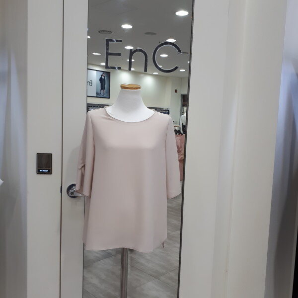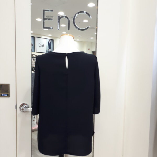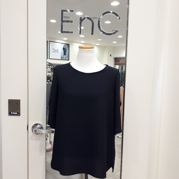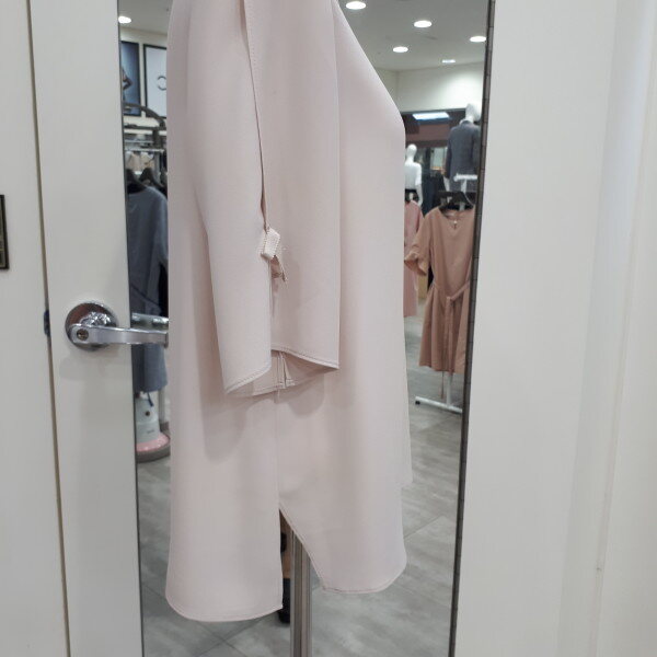 소매부분트임에 리본매듭의 라운드쉬폰 블라우스입니다