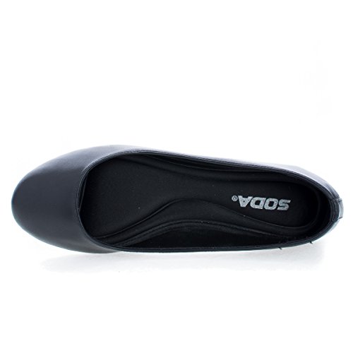 Binding : Apparel Product Description Dress and walk in comfort in these extra cushioned ballerina flats, featuring a round toe, contrast stitching, an extra cushioned insole for comfort, and an approximate 0.25 inch heel. Available in Black, etc. All man made materials. By Soda Shoes. Please note that all monitors display color differently, what you see on your monitor might be slightly different from the actual product. We strongly suggest you to look at this listing in 3 or more different device to get an average of the color. 0