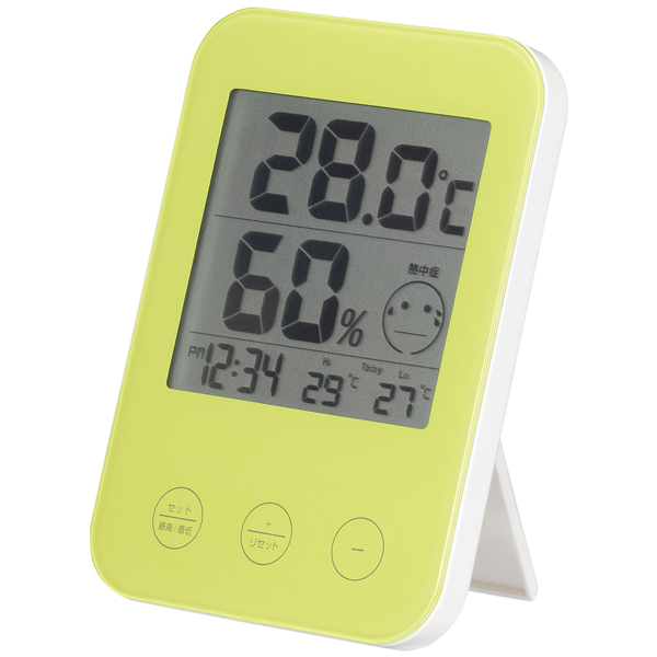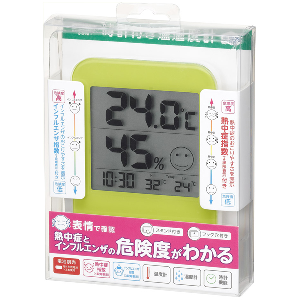 ●ヤザワ DO02GR 熱中症・インフルエンザ警報付き デジタル温湿度計 グリーン