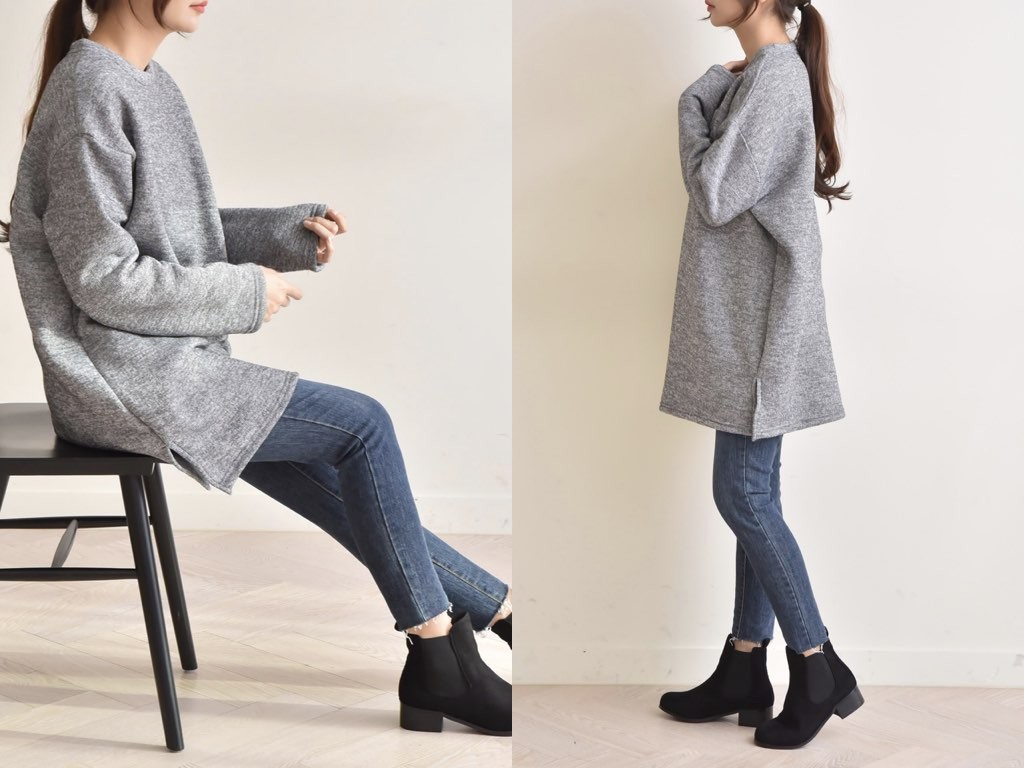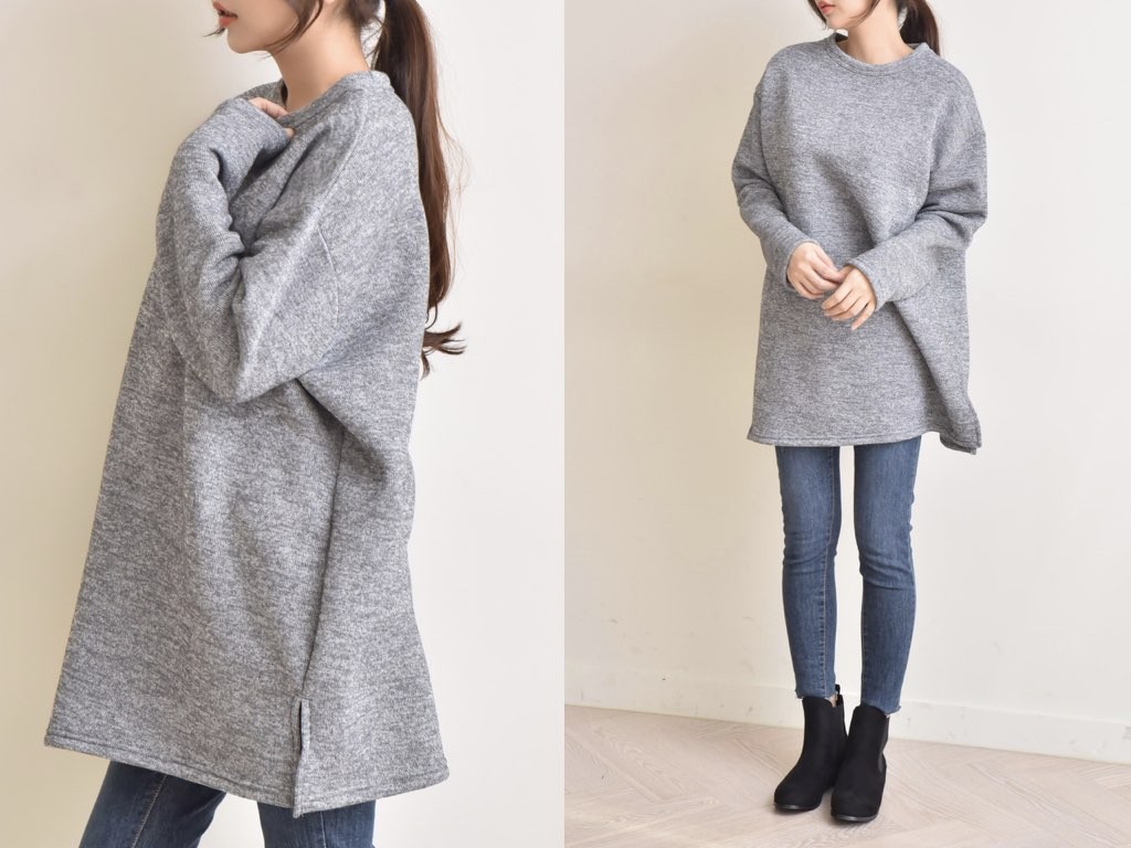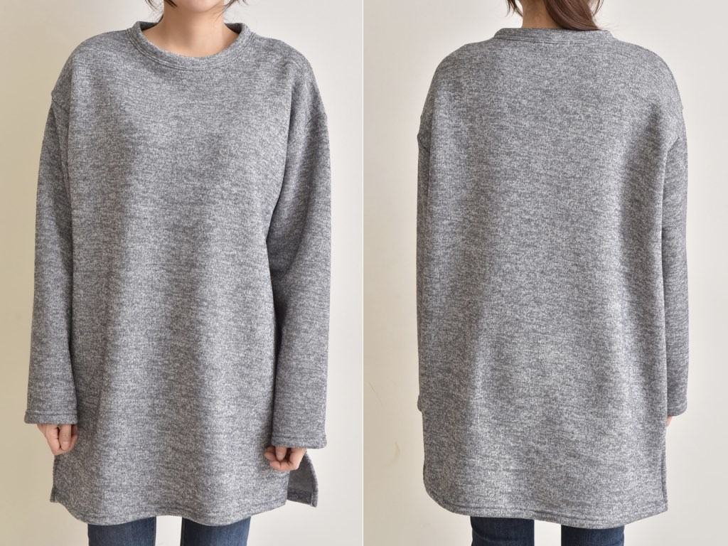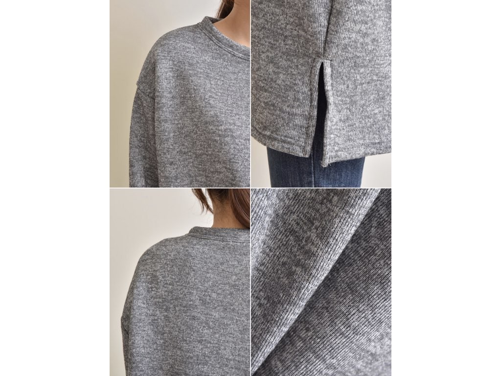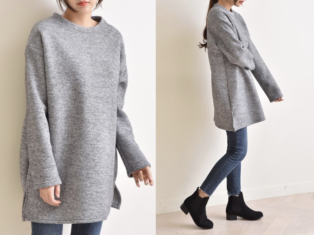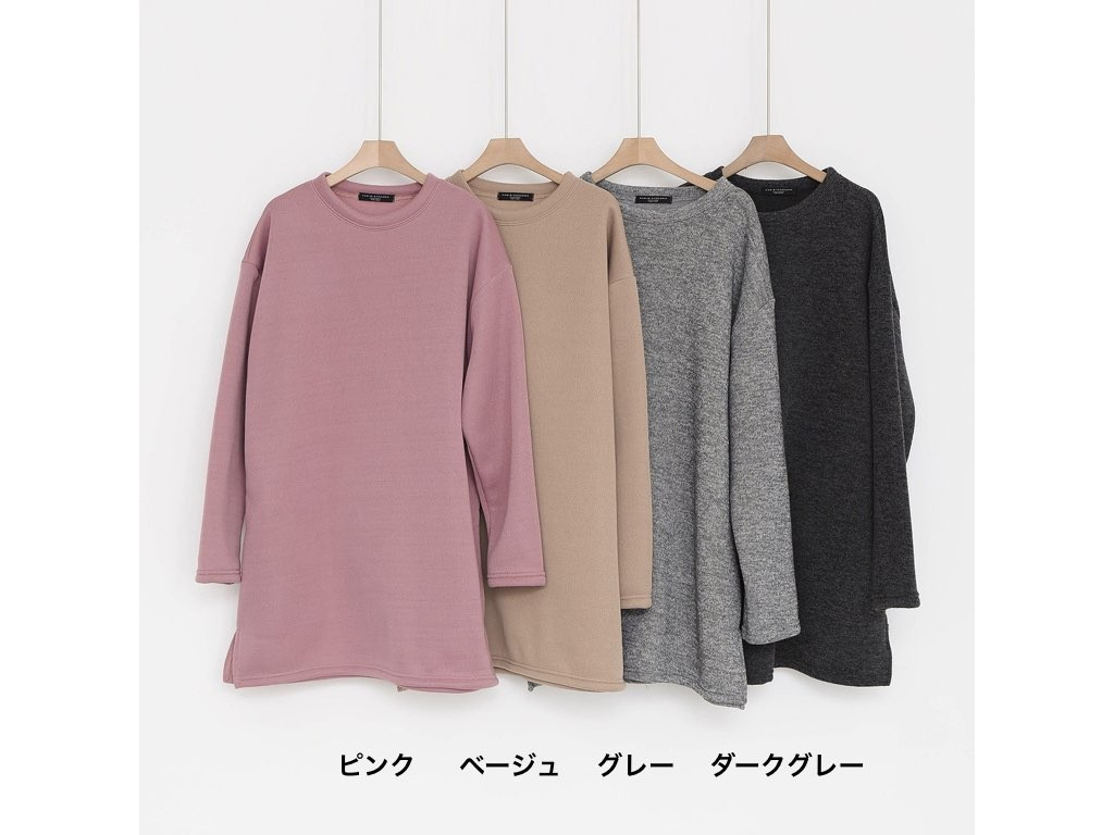 ハーフ丈のスウエットです。裏地は起毛になっており、寒くなるこれからの季節にピッタリですね。シンプルながらも、きれいなシルエットはインナーとしても活躍◎1.基本情報色:4色展開(ピンク/ベージュ/グレー/ダークグレー)サイズ:Free素材:ポリエステル製造国:Korea2.サイズ情報肩幅:59cm身幅(胸断面):64cm腕の長さ:54cm着丈(前):84cm(サイズは計る方法に応じて±2〜3cmの誤差があります。ご了承お願い致します)モデル着用サイズ:F※着用モデル(163cm、体重47kg、足のサイズ24.5cm)3.その他の情報厚み:中間透け感:なし伸縮性:中間裏地:有り(起毛)洗濯方法:ドライ(クリーニング)[注意事項]お取り寄せ商品は、海外より仕入れるため納品まで約10日前後いただきます。また店舗でも販売しており、在庫切れになる場合もございます。ご了承お願い致します。