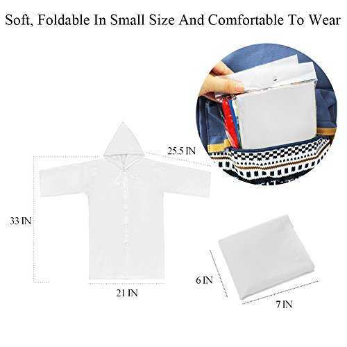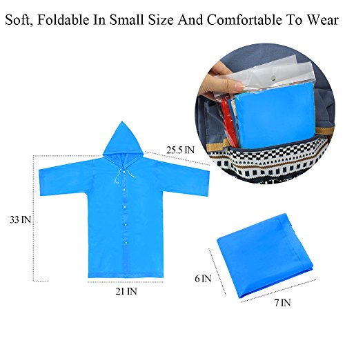 -. Feature : ☂ REUSEFUL & DURABLE: iGoods Child Rain Ponchos are made from 0.15MM EVA, Eco-friendly, Tear Resistant , Waterproof , No toxic, No Smell! 2 PACK INCLUDED. Great For Hiking, Camping, Site Seeing, Dog walkers,theme parks / ☂ Kids Rain Jackeks : iGoods Rain Coats is great for boys and girls with hight range from 110-145cm/ 3.6 -4.7 Feet. Size: 110* 55cm/43.3* 21.6inch (More Size Information could be found in Pictures) / ☂ Compact and Portable: iGoods Children Rain Suits are soft and comfortable. It could be folded into size 6*7 inch, Just keep it in your kids' backpack or in trunk- don't take up a lot of room- good for emergencies / ☂ Best Protection From Rains: iGoods Rain Prochos are designed with hood and sleeves. There is a drawstring to stop rain come into your neck and keep the hood on head even in windy Days. / ☂ Wide Use: It easy to slip on with buttons for sudden rainstorm and provide good coverage, Pefect for sporting events, travelling, dog Walking, Disney World, baseball game, outdoor concert, hiking trip, football game, umping muddy puddle, unexpected thunderstorms etc.