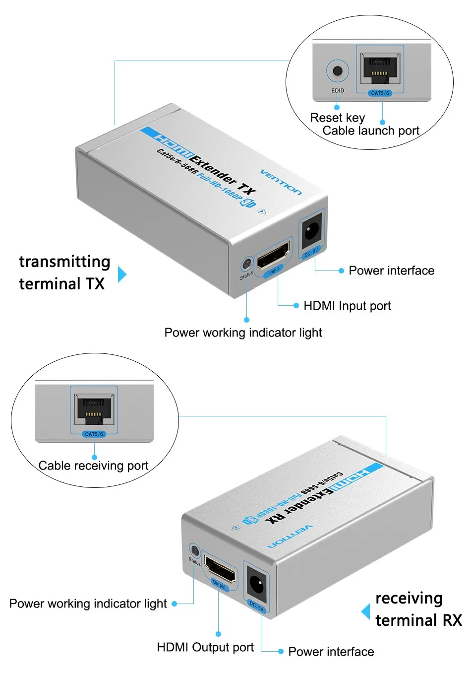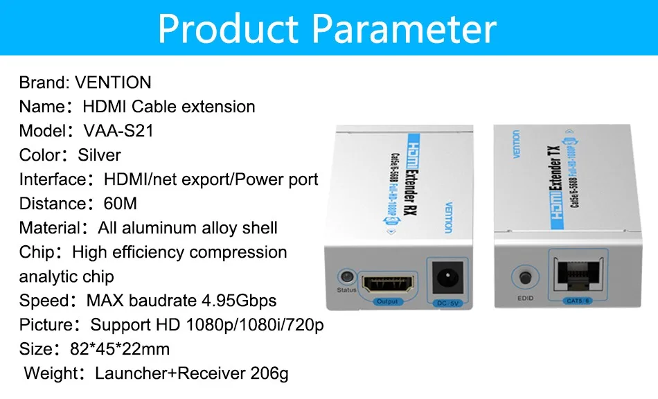 Outer Diameter:HDMI Extender Cat5/6 RJ45 Ethernet