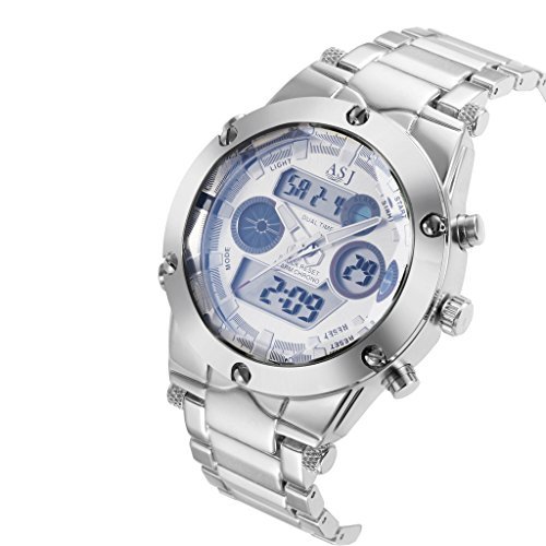 Dual time zones, LED display, Stainless steel band