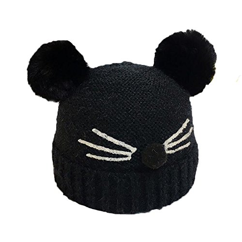 Thick knitted cap with cute animal ears keeps head and ears warm and fully covered