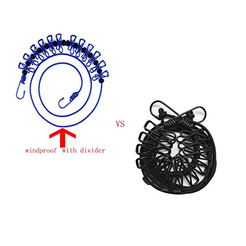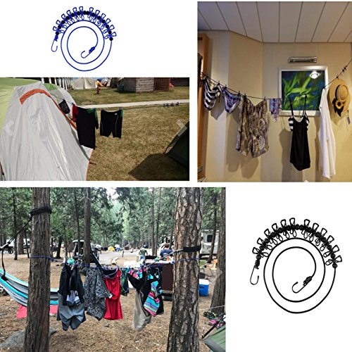 Travel Clothesline 7 Pieces Laundry Line Portable Elastic Retractable Wire Clothes Rope for Camping Outdoor Windproof Indoor Clamp 2 Pack with Free Clothespins Gift by LLAMEVOL Blue and Black