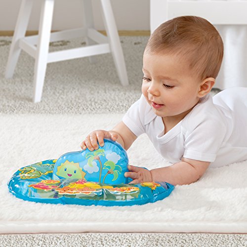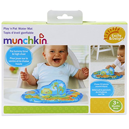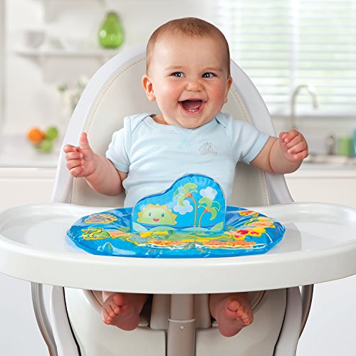 The play 'n pat water mat is a fun, interactive water-filled toy that teaches your baby cause-and-effect. It's a great activity for when your baby is on tummy time or sitting in a high chair. It's easy to fill with water and inflate the center 3-d piece for tons of tactile and visual fun.