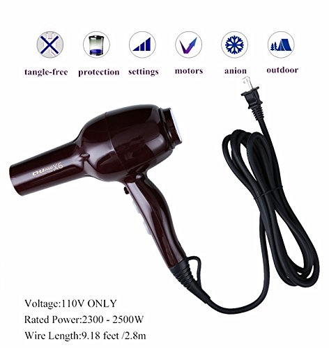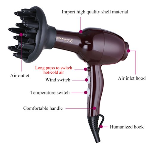 MORE OPTIONS:This hair dryer provides 2 speeds/3 temperature settings for different styles and drying times, plus hot, warm and cool settings for different hair types