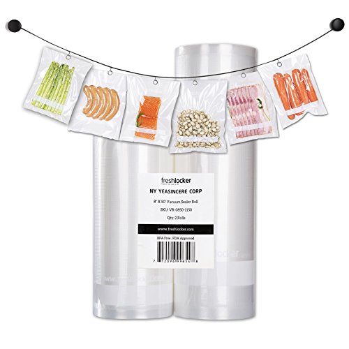 Freshlocker Food Saver Vacuum Sealer Bags , 4 Mil 1 Roll 8"x50' & 1 Roll 11''x50' Commercial Grade Bag Rolls for Foodsaver , Sous Vide