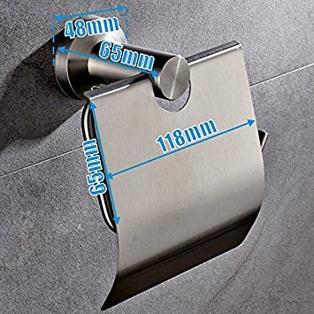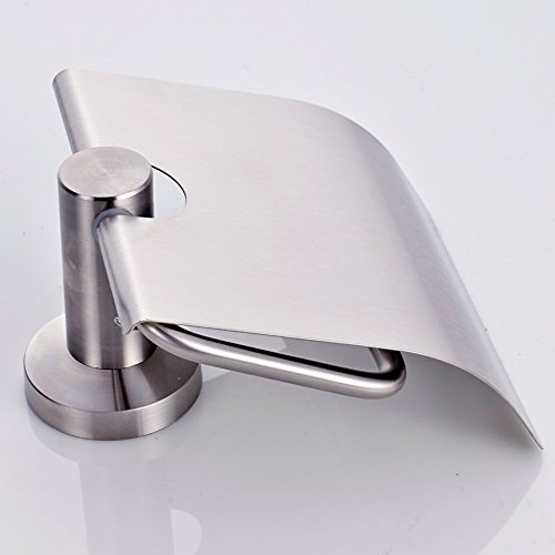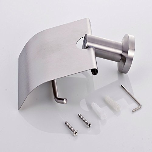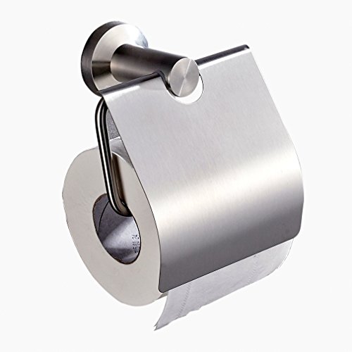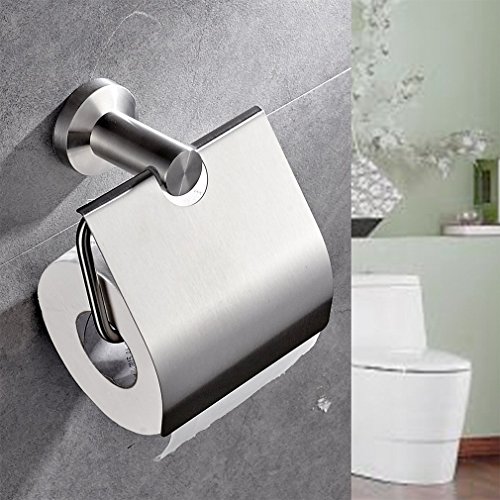 ROVATE Toilet Paper Holder Single Roll with Cover, SUS 304 Stainless Steel Wall Mount Paper Towel Dispenser Tissue Roll Hanger , Brushed Nickel