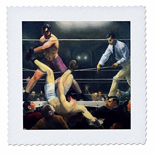 3dRose qs_79452_5 Vintage Art Dempsey & Firpo Boxing Match 1924 by Artist George Bellows Quilt Square, 14 by 14"