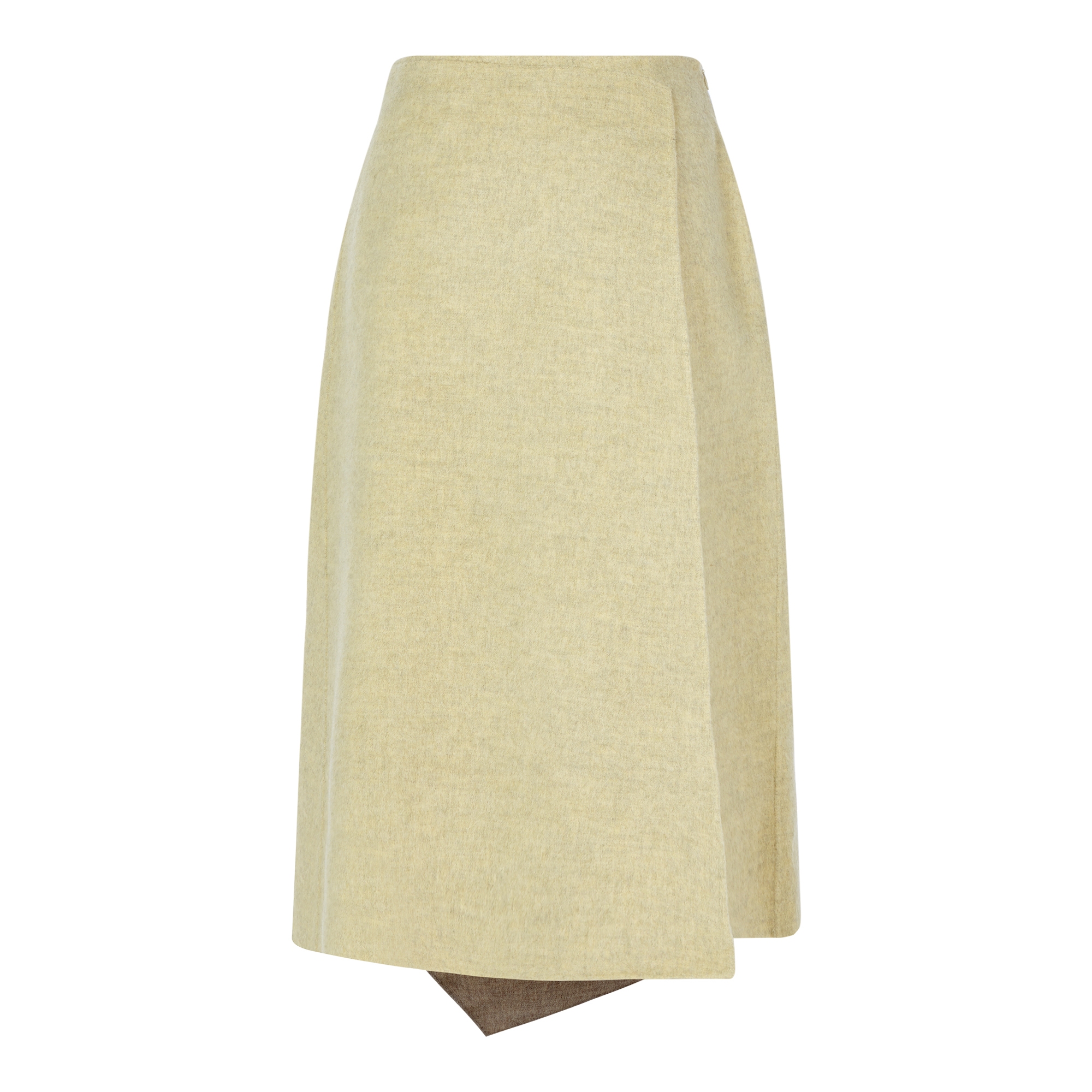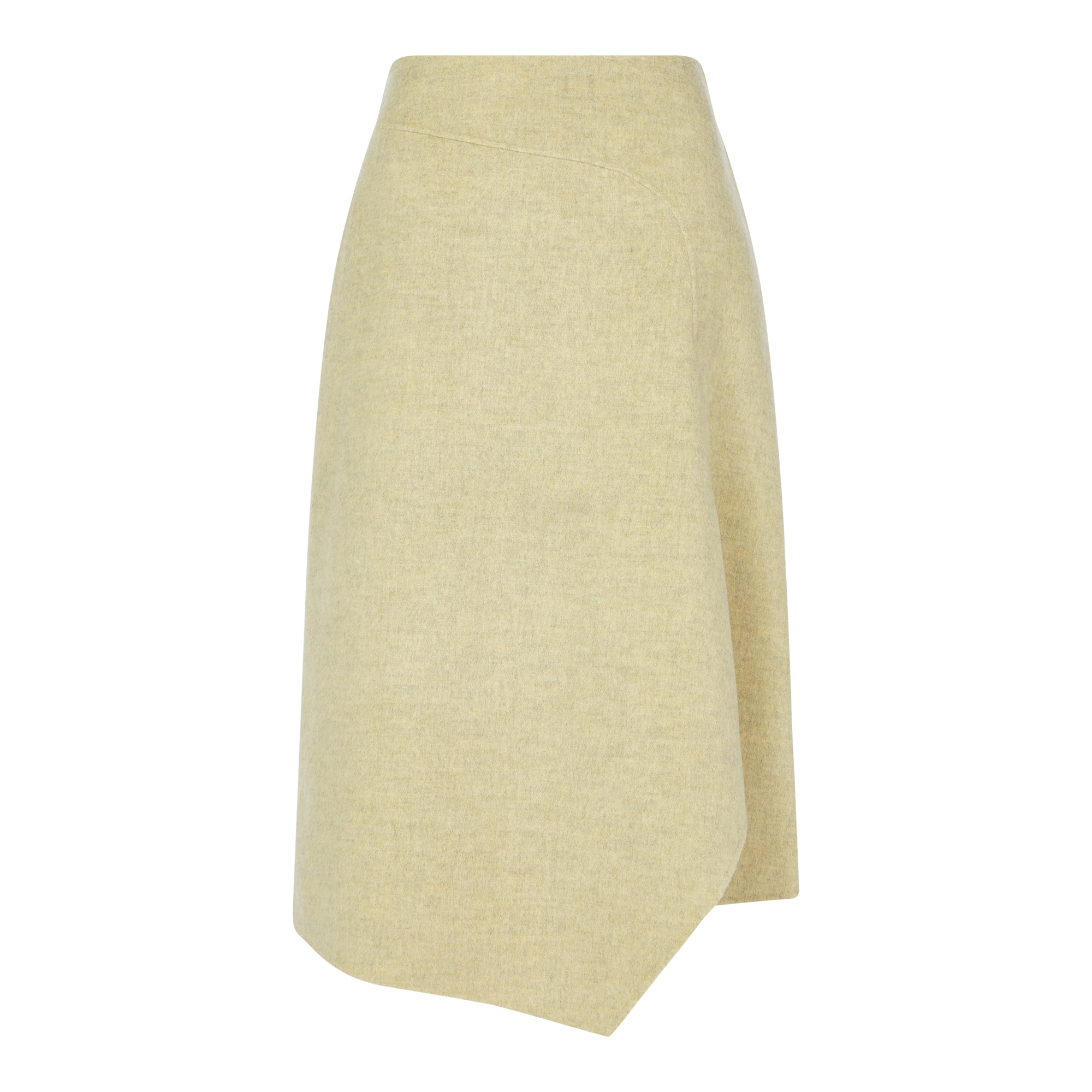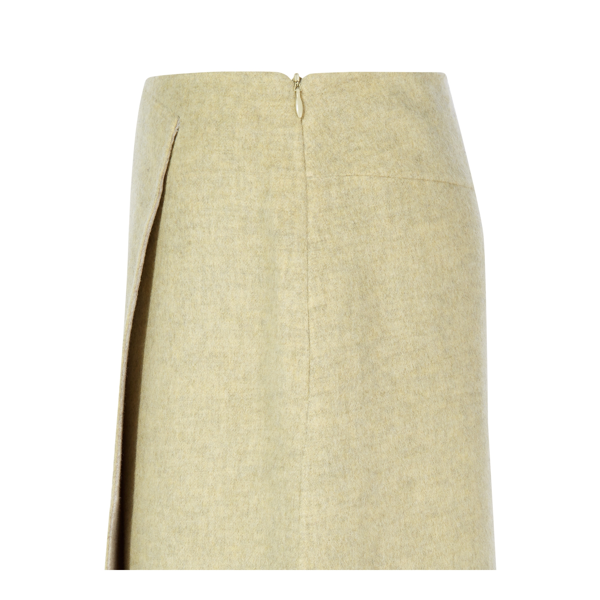 컬렉션 : 2016 Fall/Winter 디자인 포인트 : 비대칭 컷팅이 포인트인 울소재의 A라인의 랩스타일 스커트 스타일링 추천 : 니트 티셔츠와 코트에 모던하고 멋스럽게 스타일링 가능함