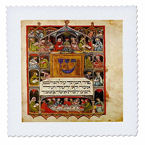 3dRose qs_193072_2 Print of The Hebrew Haggadah from 1400 Quilt Square, 6 x 6"