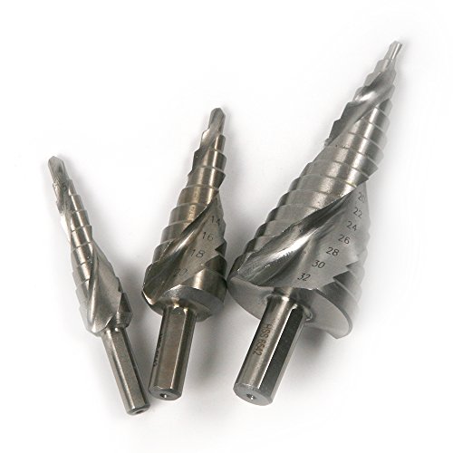set of 3 HSS6542 M2 Steel Spiral Groove Step Drill Bit Set for Stainless Steel Metal Wood Hole