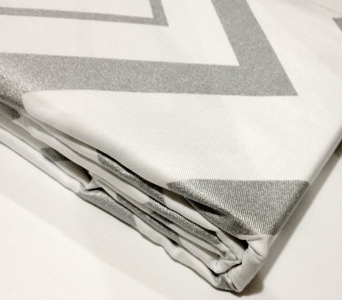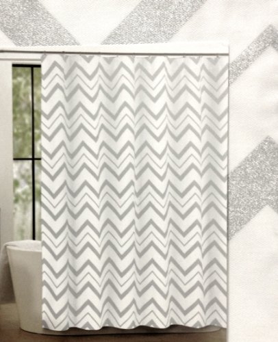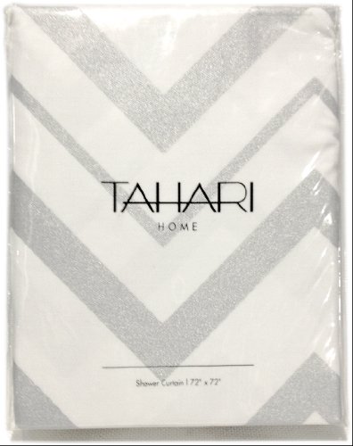 Shower Curtain Fabric Tahari Chevron 72 x 72 Silver Chevron on White