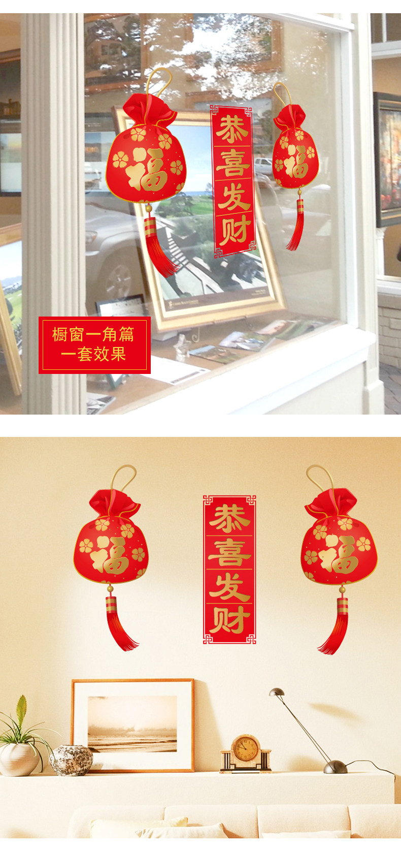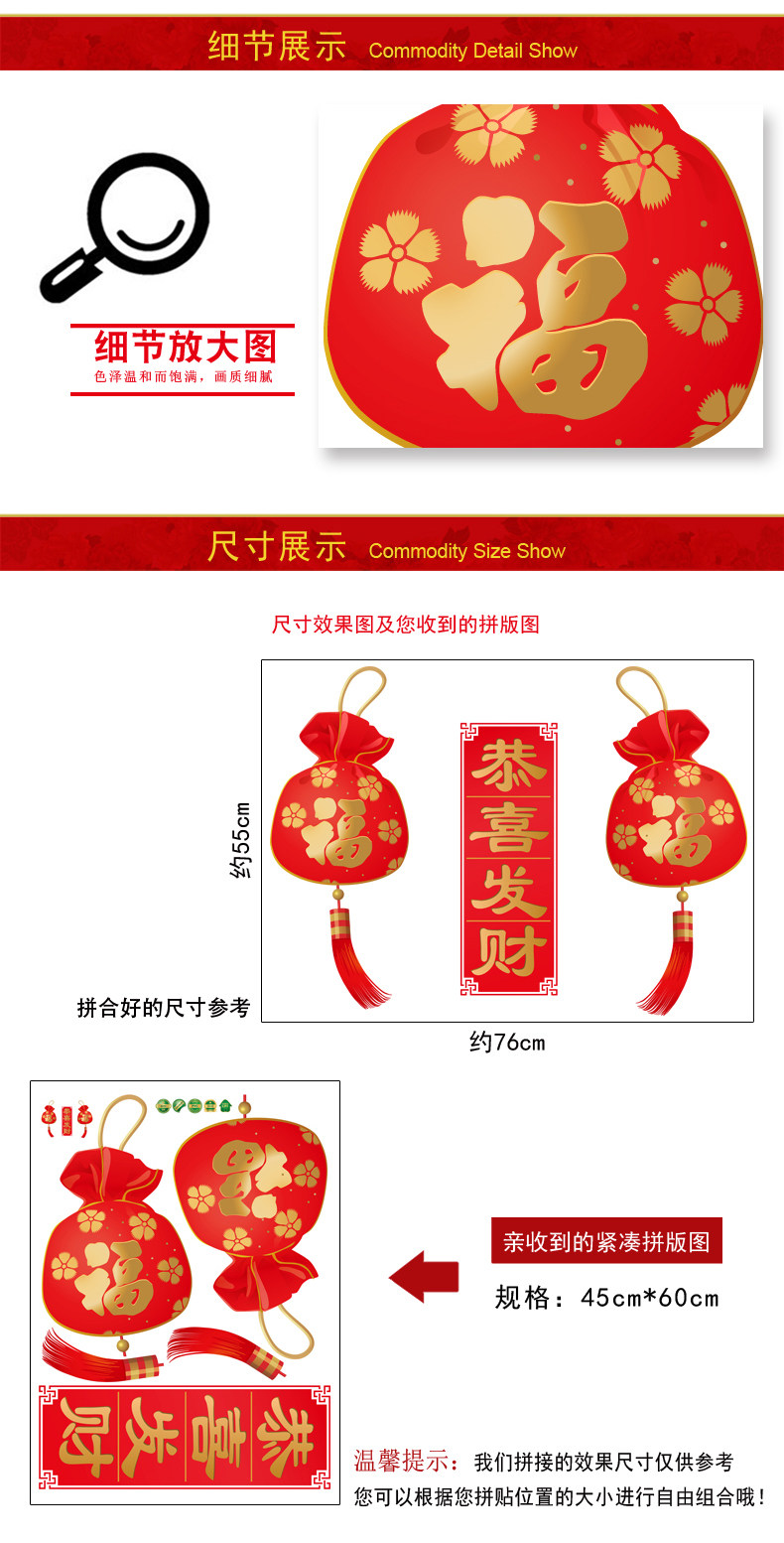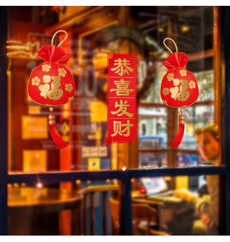新年福袋贴恭喜发财玻璃橱窗门贴元旦装饰场景布置墙贴画窗花