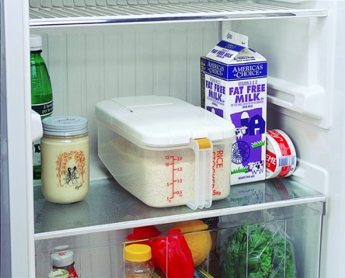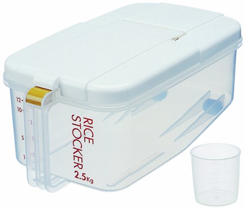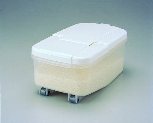 ● refrigerator storage rice bin ● rice to keep the rice freshness insect is difficult luck easy out because freshness is long-lasting ♪ ● casters. ● cover the one-push open. Graduated the amount of rice is seen ●. ● with a measuring cup. ● capacity (approximately): 2.7L ● size (approximately): width 153 × depth 281 × height 115mm ● Material: body lid button / polypropylene roller / ABS resin spring / stainless ● Made in Japan