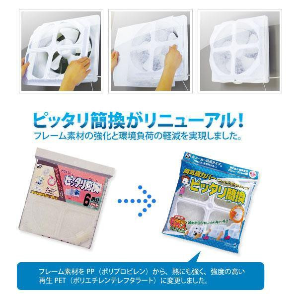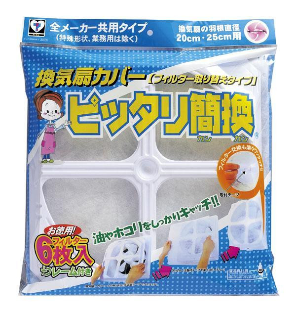 | 油・ホコリ等をしっかりキャッチして、換気扇の汚れを防ぎます。「ピッタリ簡換」は標準サイズの換気扇(羽根直径20~25cm)にぴったり合う換気扇カバーです。フレームは耐熱温度の高いPET素材を使用しております。換気扇へのフレームの取付は両面テープでワンタッチ!フィルターの取り付け交換は取り付けテープで楽々スピーディ!フレームを外さずに取り替えできます。フィルターが6枚入ってお得です。 |