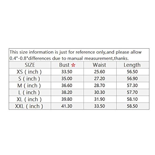 XX-Large: Bust: 41.3 inch, Waist: 33.5 inch, Length: 58.5 inch