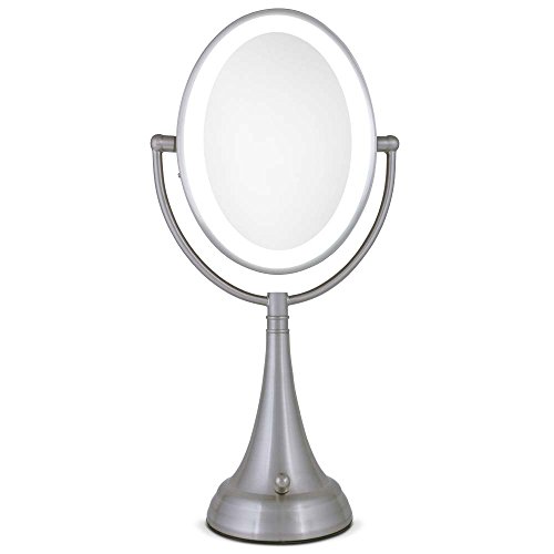 Zadro LEDOVLV410 - LED Lighted 10X/1X Oval Vanity Mirror with Satin Nickel Finish