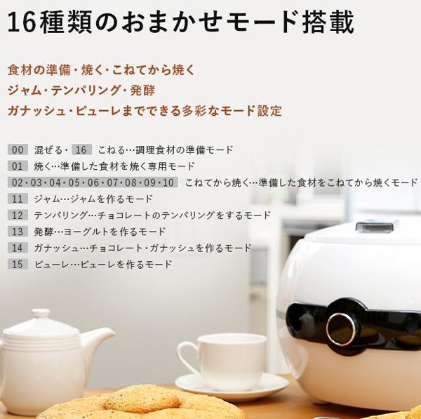 | 仕様 | ●電源:AC100V 50/60Hz ●消費電力:530W ●コード長さ:約120cm ●温度ヒューズ:184度 ●調理モード:16種類 ●焼き色設定:3段階(LIGHT/MED./DARK) ●調理時間:調理モードにより設定可能 ●ケーキパン容量:約1L |
