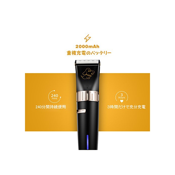 【충전식 바리 캔】2000mAh의 충전식 배터리는,3시간으로만 충전 상태가 되고, 약240 분연속 가동에 옵니다.파워가 다른 클리퍼 보다 2배 강력 입니다.무선의 설계에 손질 간단하고,업무용견 바리 캔으로서도 초심자용 애완동물 바리 캔/애완동물용 쉐이버로서도 최적인 애완동물 용품이기 때문에,추천입니다.
