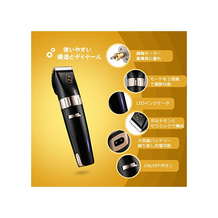 【칼이 드는 정도 발군】클리퍼의 칼의 부분은 티타늄(티탄)과 도자로 구성 되고 있기 때문에,칼이 드는 정도가 뛰어나고, 애완동물을 상처를 입히지 않도록 입니다.또한방열 효과가 발군에 장시간 사용해도 애완동물은 열을 느껴지지 않는 위에,부드러운 트리밍에 옵니다.