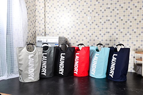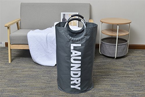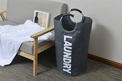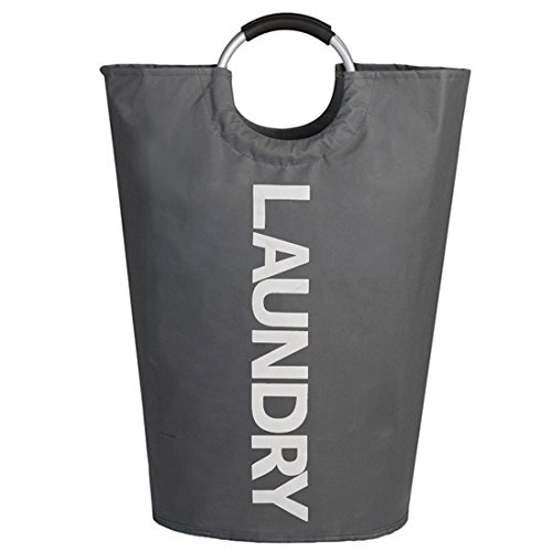 IHOMAGIC Heavy Duty Collapsible Laundry Bag With Aluminum Alloy Handles, Canvas Laundry Basket, Foldable Washing Basket (Dark Grey)