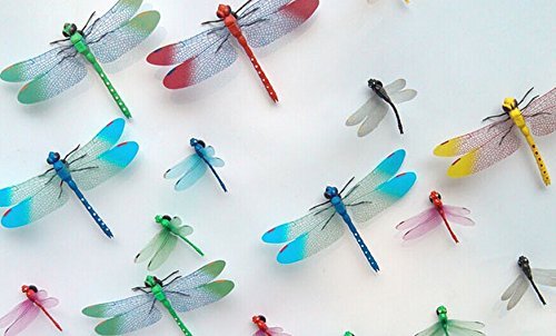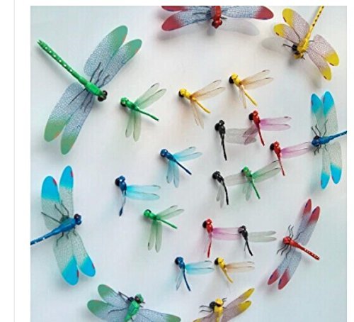 Title : Amaonm 20pcs 3d Colorful Dragonfly Vividly Stickers Making Stickers DIY ornament Party Kidgarden Wall Stickers Wall Decal Man-made vividly Dragonfly art Decor Decals