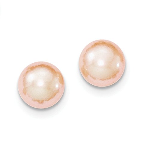 Solid 925 Sterling Silver 9-10mm Pink FW Cultured Button Simulated Pearl Stud Earrings