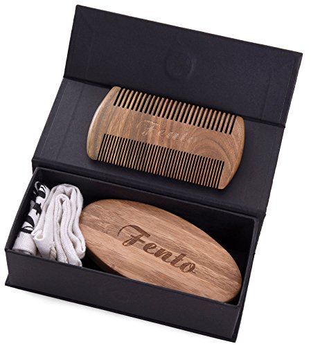 Fento Boar Bristle Beard Brush and Beard Comb Set - For Men Beard and Mustache, Thick & Thin Teeth Sandal Wood Comb, With Gift Box and Carrying Bag
