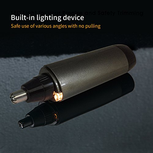 - BATTERY OPERATED with BRIGHT LED LIGHT: Cordless use, this nose hair trimmer runs on one "AA" battery (included) and operates for up to 90 minutes, so you won't have to worry about power outlets or cords. With Bright Led light, it can help you to find those hard to reach hairs and avoid accident injury.