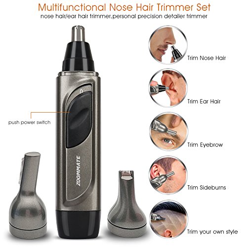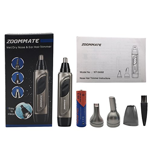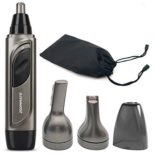 ZOOMMATE 3 in 1 Nose & Ear Hair Trimmer IPX 7 Waterproof Nose Trimmer for Men, Stainless Steel Blade With LED light Wet/Dry Use Nose Clippers Battery Operated (Included an AA battery )